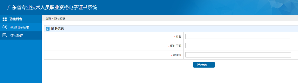 進(jìn)入證書驗(yàn)證頁(yè)面,根據(jù)證書信息輸入“姓名”、“證件號(hào)碼”、“管理號(hào)”查詢、驗(yàn)證證書信息的真?zhèn)巍?/p>