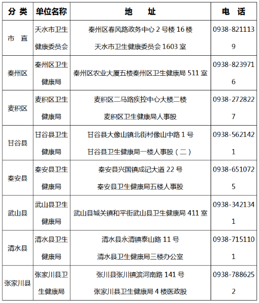 天水市2021年度衛(wèi)生(護(hù)士)專業(yè)技術(shù)資格證書(shū)已下發(fā)各單位、縣區(qū),請(qǐng)成績(jī)合格人員及時(shí)到報(bào)考資格確認(rèn)地點(diǎn)領(lǐng)取證書(shū)。具體聯(lián)系方式見(jiàn)附表。