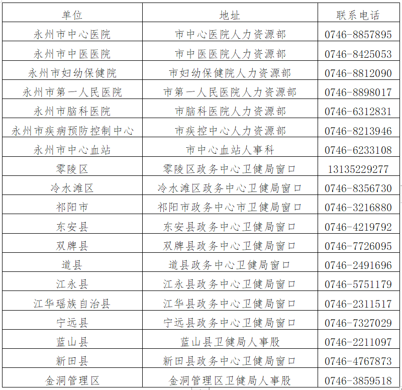 (2)領(lǐng)取地點(diǎn):各縣市區(qū)、管理區(qū)政務(wù)中心衛(wèi)健局窗口或衛(wèi)健局人事股,市直屬各醫(yī)療衛(wèi)生單位人力資源部(詳見下表)。