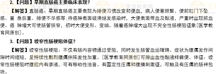 2.【問題】早期直腸癌主要臨床表現(xiàn)?