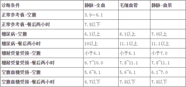 血糖參考值及一般診斷標(biāo)準(zhǔn)