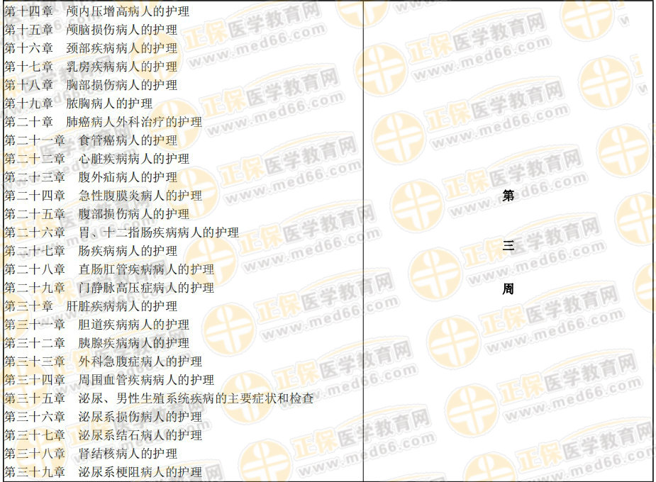 外科護理學(xué)備考周計劃:建議先復(fù)習各論14~45章,后復(fù)習總論1~13章。