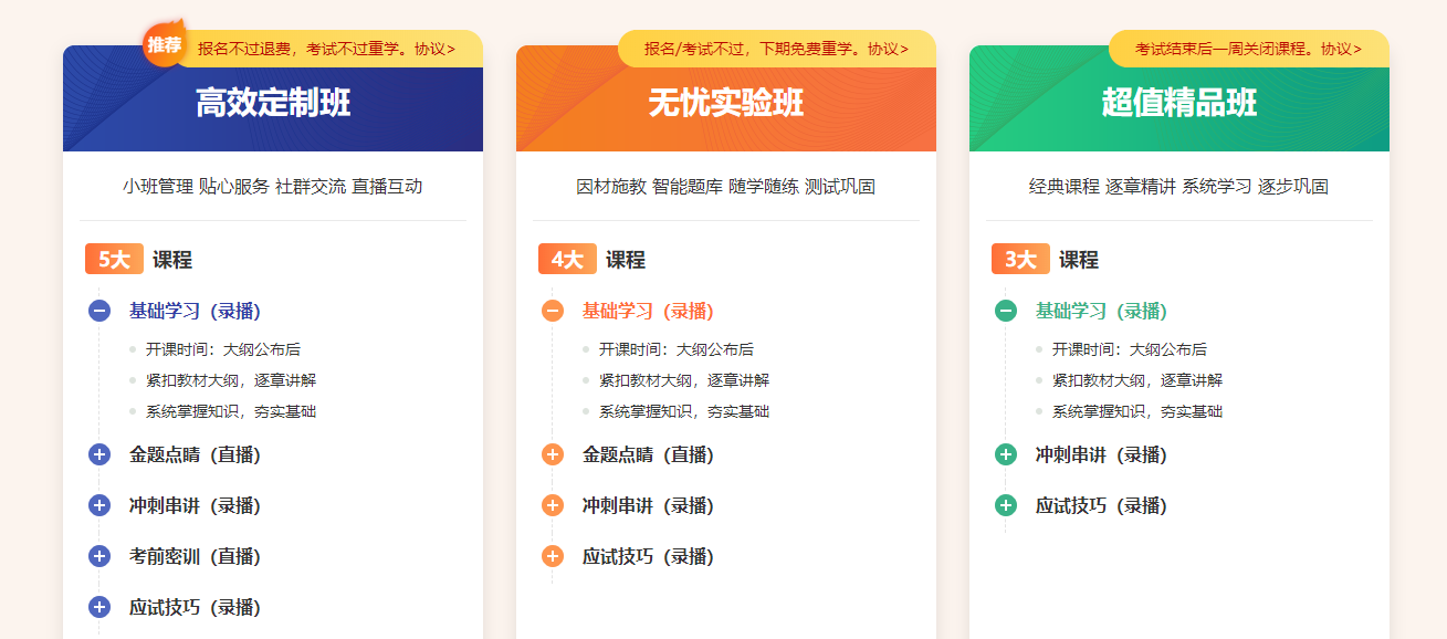 每個班次設(shè)置的課程內(nèi)容與班次服務(wù)也是依次遞增的,考生可以根據(jù)自己的情況去選擇適合自己的課程!去了解詳細(xì)課程內(nèi)容>