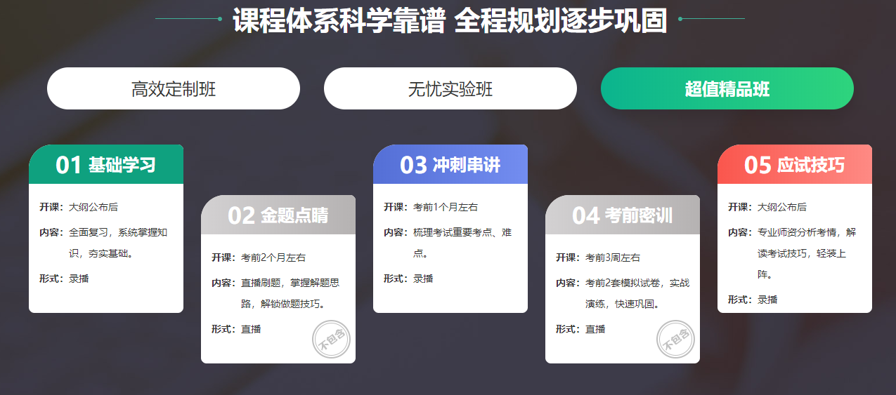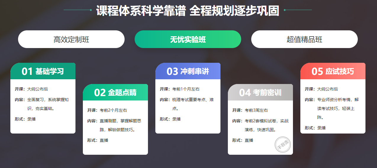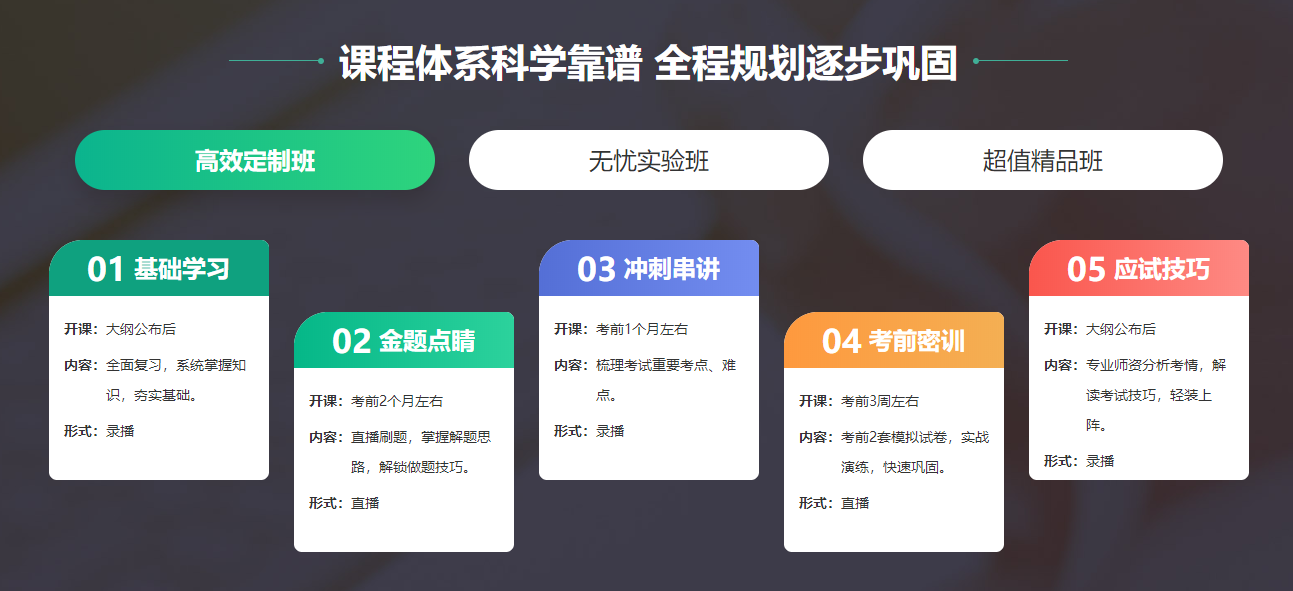 以上不同班次滿足不同的學習需求,考生可根據(jù)自己的情況選擇適合自己的課程。點擊了解課程>>