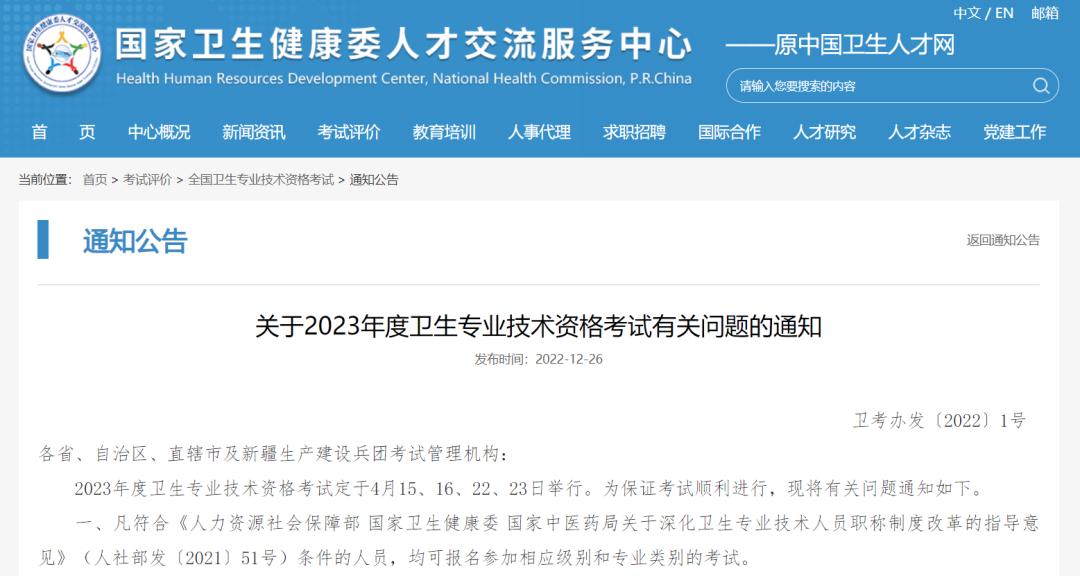 國家衛(wèi)生健康委人才交流服務中心(原中國衛(wèi)生人才網(wǎng))確定了部分專業(yè)考試代碼及考試內(nèi)容將發(fā)生變化!