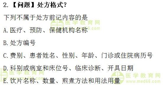 【解析】處方格式,分為三部分:前記、正文、后記。
