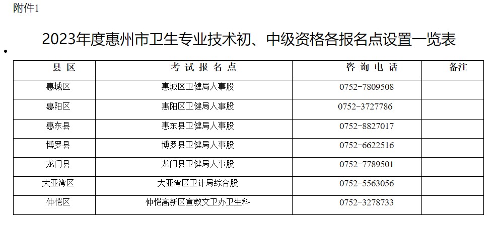 2023年度惠州市衛(wèi)生專業(yè)技術(shù)初、中級(jí)資格各報(bào)名點(diǎn)設(shè)置一覽表