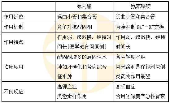3.【問題】弱效保鉀利尿劑-螺內(nèi)酯、氨苯喋啶相同點和不同點有哪些?