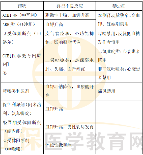 3.【問題】抗高血壓藥物典型不良反應和禁忌證有哪些?