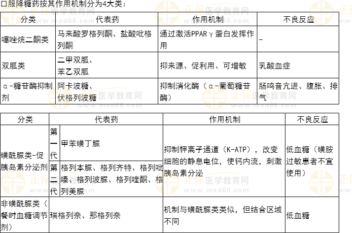 1. 【問(wèn)題】常用降糖藥的治療機(jī)制、代表藥物、不良反應(yīng)有哪些?