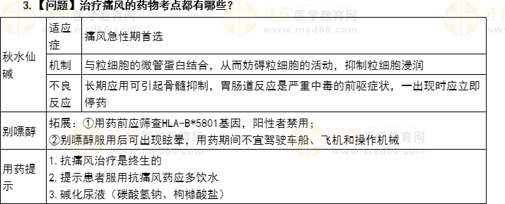 3.【問題】治療痛風(fēng)的藥物考點(diǎn)都有哪些?