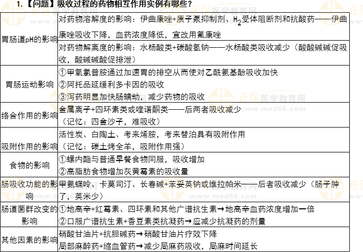 1.【問(wèn)題】吸收過(guò)程的藥物相互作用實(shí)例有哪些?