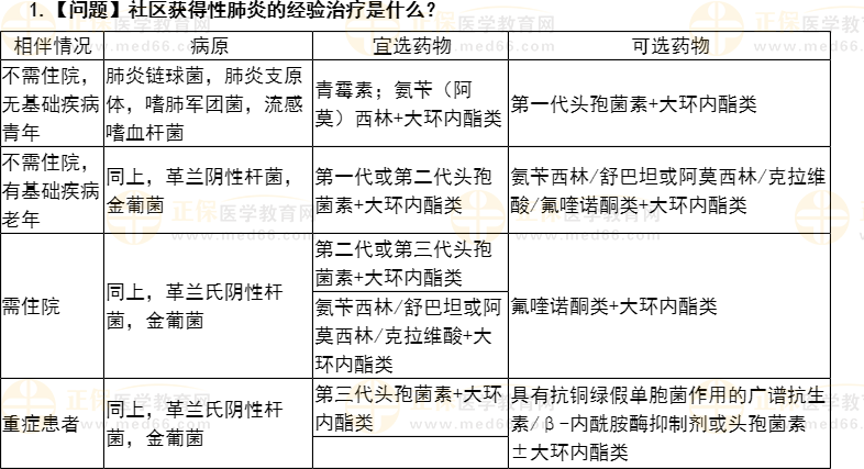 1.【問題】社區(qū)獲得性肺炎的經(jīng)驗治療是什么?