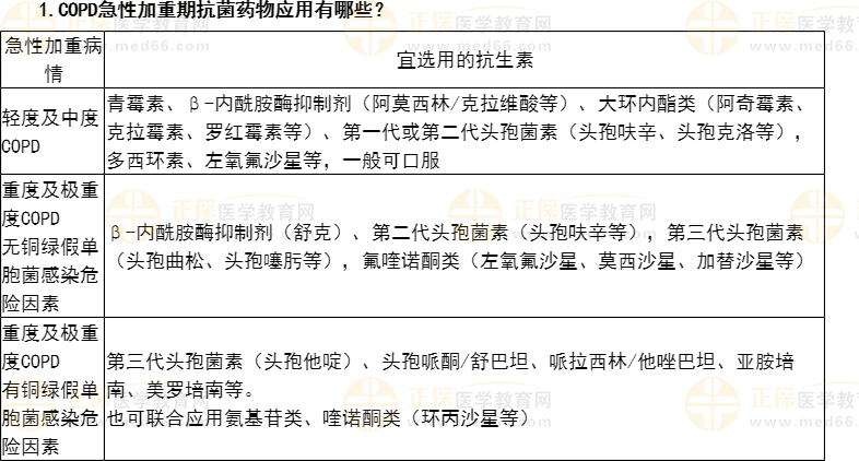 1.【問題】COPD急性加重期抗菌藥物應(yīng)用有哪些?