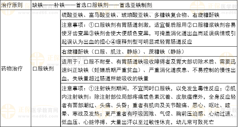 | 一般治療原則 | ①治療基礎(chǔ)疾病,去除病因;②糾正偏食及不良的烹調(diào)習(xí)慣,加強(qiáng)營(yíng)養(yǎng)知識(shí)教育;③補(bǔ)充葉酸、VitB12等造血原料 |