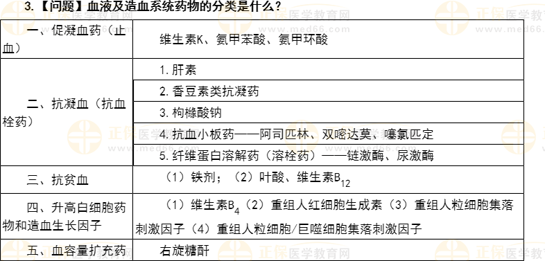 3.【問題】血液及造血系統(tǒng)藥物的分類是什么?