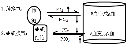 (3)PO2:①肺泡﹥血液﹥組織細胞;②PCO2:組織細胞﹥血液﹥肺泡。