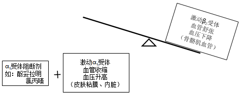 ②腎上腺素與α1受體阻斷藥同時存在時對血管的作用: