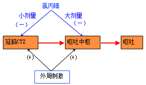大劑量——直接抑制嘔吐中樞。