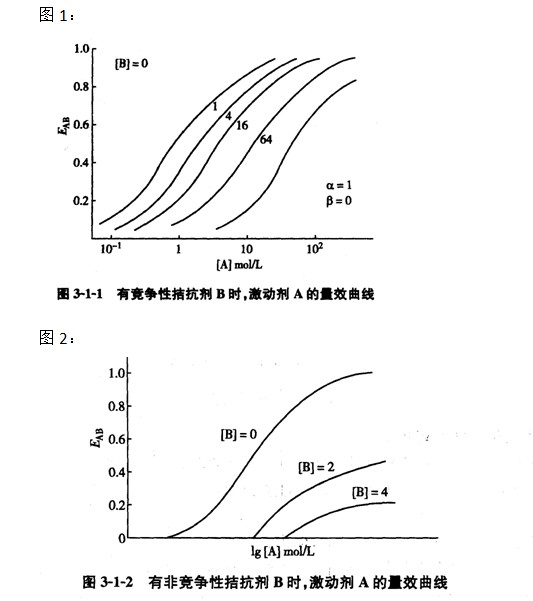 拮抗劑 | 競(jìng)爭(zhēng)性拮抗劑(圖1) | ①親和力較強(qiáng) ②無(wú)內(nèi)在活性,占據(jù)受體而拮抗激動(dòng)劑的效應(yīng) |