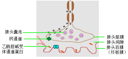 神經(jīng)肌肉接頭處的信息傳遞過程是一個電-化學(xué)-電傳遞的傳導(dǎo)過程。