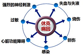 (4)感染:革蘭陰性細菌、革蘭陽性細菌、立克次體、病毒等均可引起感染性休克。特別是革蘭陰性細菌,其分泌的內(nèi)毒素起重要作用。