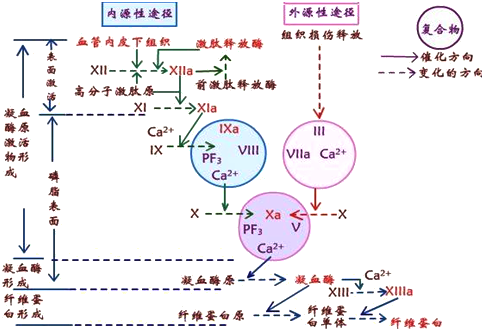2.外源性凝血:生理狀態(tài)Ⅲ不表達(dá),血管損傷后組織中的因子Ⅲ,血管內(nèi)皮細(xì)胞中因子Ⅲ被激活。它在血液外的組織中。