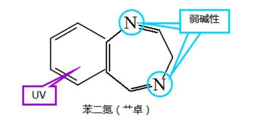 1)結(jié)構(gòu)特征:1-甲基,3位無,5-苯基,7-氯