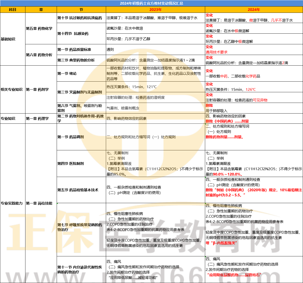 2024年初級藥士官方教材已經(jīng)到貨,醫(yī)學(xué)教育網(wǎng)專業(yè)教學(xué)團隊即刻整理出2024年教材變動情況,整體來說變動不大,大部分變動基本上是非實質(zhì)性變動或者說是非考點,請2024年初級藥士考生參考學(xué)習(xí)!