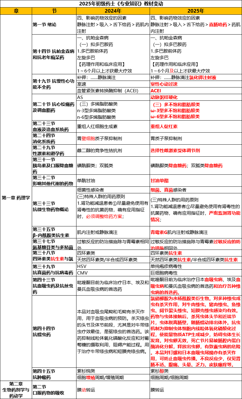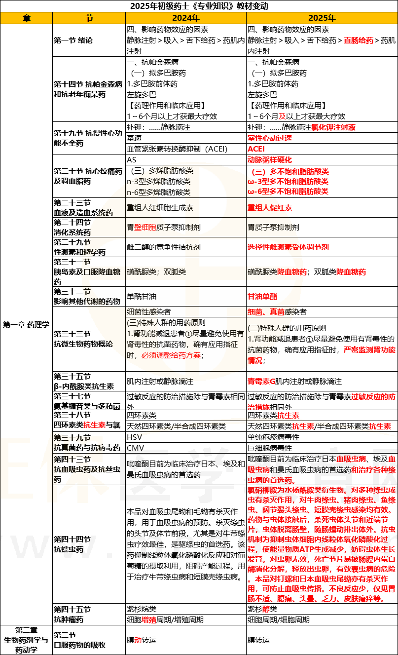 2025年初級藥士《專業(yè)知識》考試教材已經(jīng)到貨,網(wǎng)校教學團隊針對即刻整理出教材對比情況,具體內(nèi)容如下: