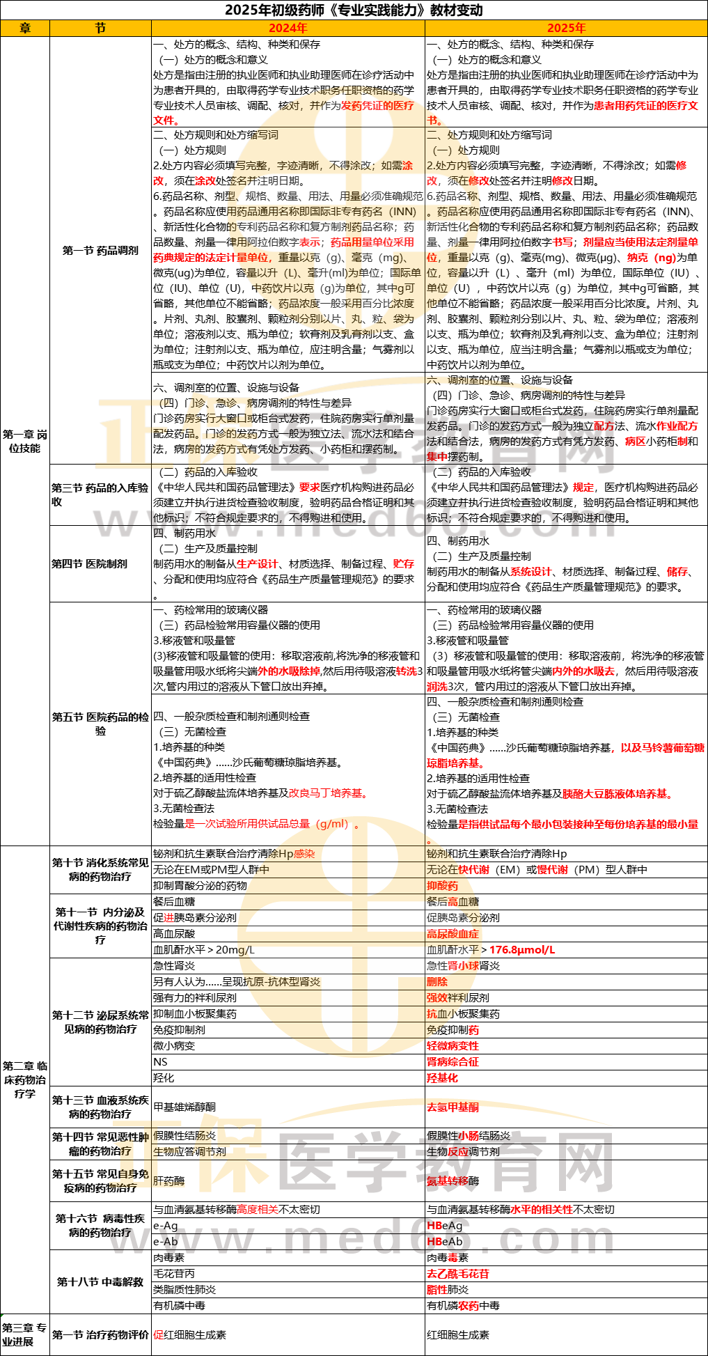 2025年初級藥師《專業(yè)實踐能力》教材變動詳解!