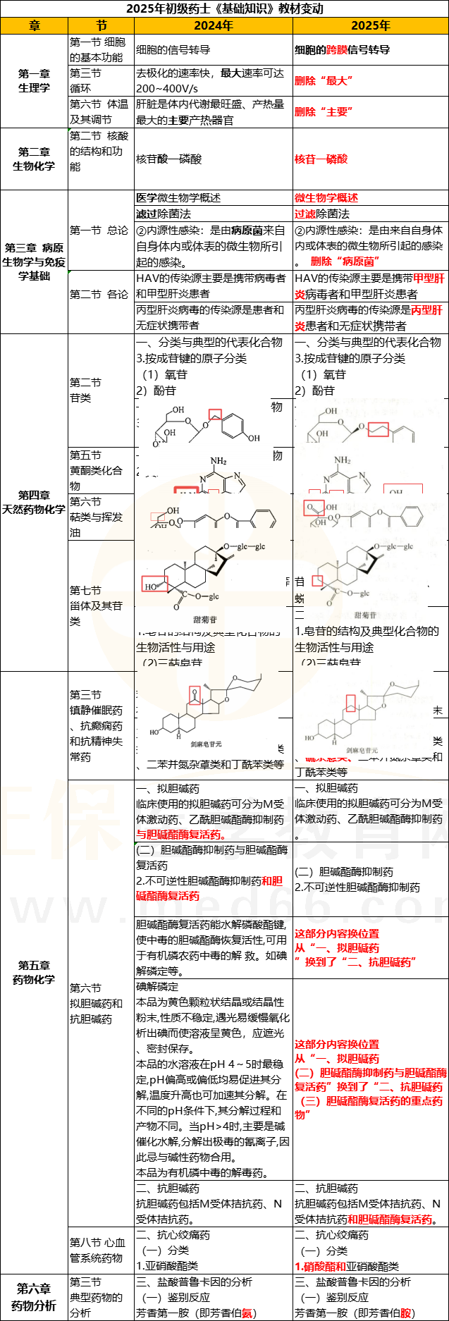 2025年初級藥士《基礎(chǔ)知識》教材變動詳解!