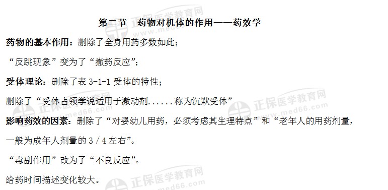 藥理學的任務和內(nèi)容:藥物效應動力學部分增加了“包括藥物……分子機制”。