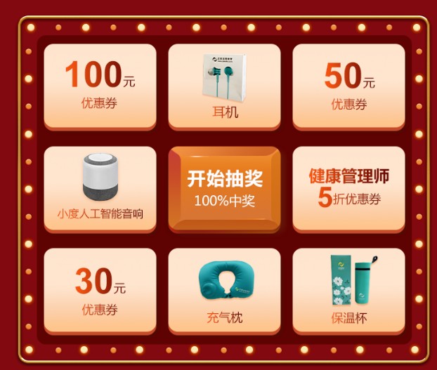 活動期間每人每天可抽獎一次,最高贏100元優(yōu)惠券,可與折扣疊加使用,更有精美實(shí)物禮品等你領(lǐng)。