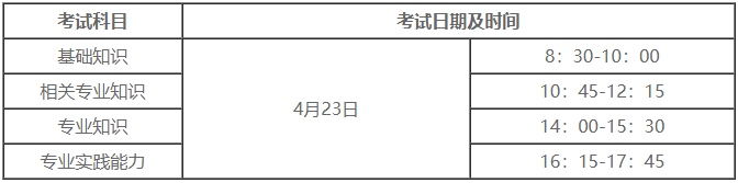 初級(jí)藥士/藥師/主管藥師考試時(shí)間一般在每年的4-5月份考試。2024年初級(jí)藥士/藥師/主管藥師考試時(shí)間暫未公布,參考2023年如下:
