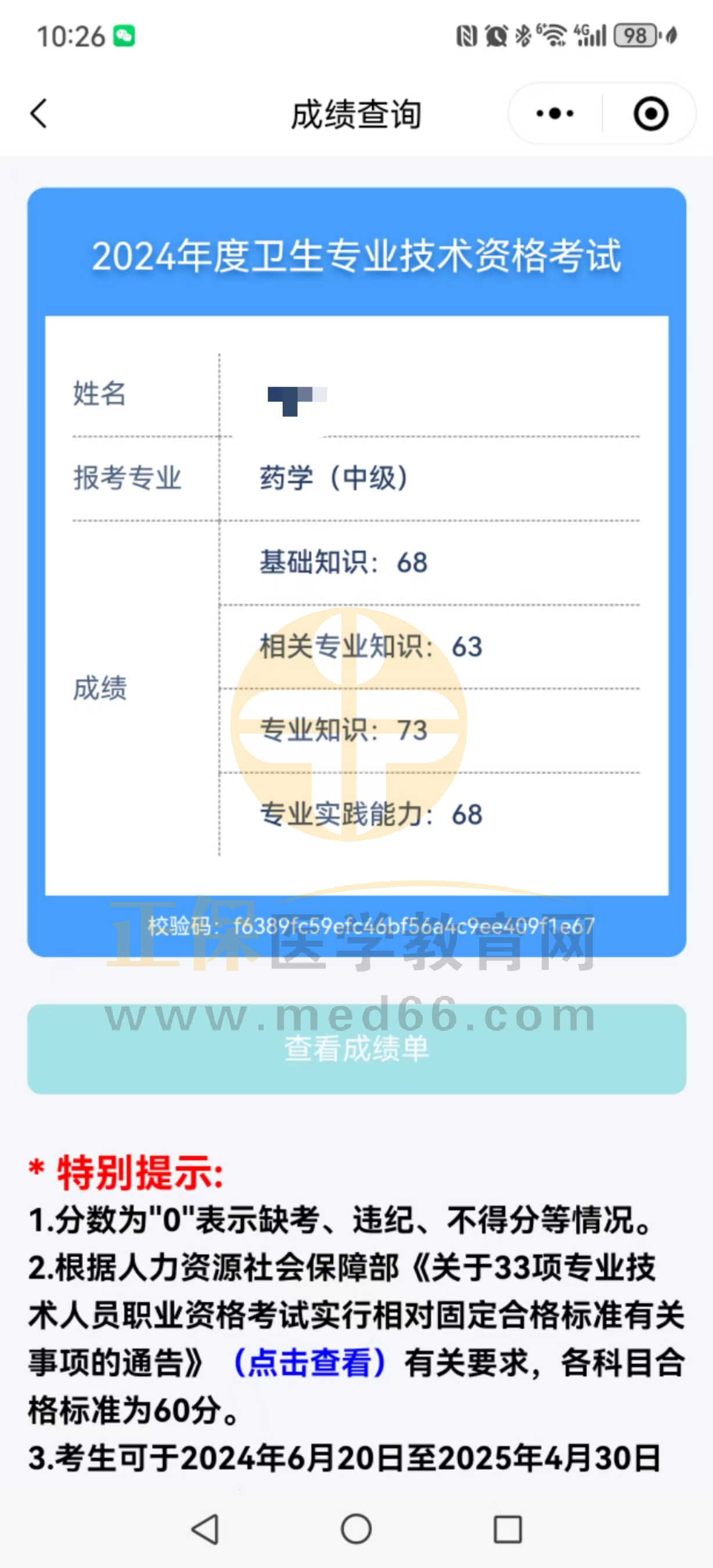 恭喜這位通過(guò)考試的學(xué)員,他的成功離不開(kāi)自己的努力!醫(yī)學(xué)教育網(wǎng)課程對(duì)大家有所幫助也是網(wǎng)校最驕傲的事情!