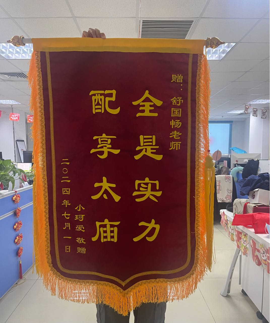 近日網(wǎng)校接收到網(wǎng)校主管藥師學(xué)員給趙苪言老師、舒國暢老師以及全體老師贈送的錦旗!