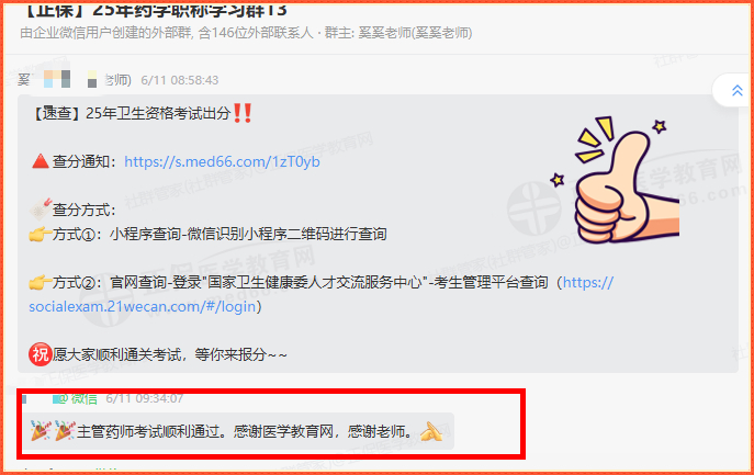 2025年主管藥師考生發(fā)來捷報!感謝醫(yī)學教育網(wǎng)!
