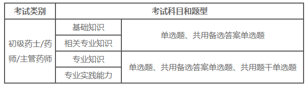 初級藥士/藥師/主管藥師資格考試科目分為:“基礎知識”、“相關專業(yè)知識”、“專業(yè)知識”、“專業(yè)實踐能力”等4個科目。具體內容如下: