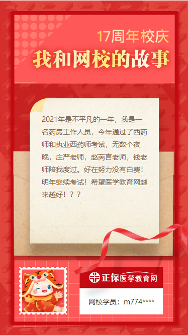 正保醫(yī)學(xué)教育網(wǎng)已經(jīng)17周歲了,自17周年校慶上線以來,我們收到了來自全國各地學(xué)員的祝福與支持,我們一起來看看下面這位藥學(xué)職稱考試學(xué)員的心路歷程吧~