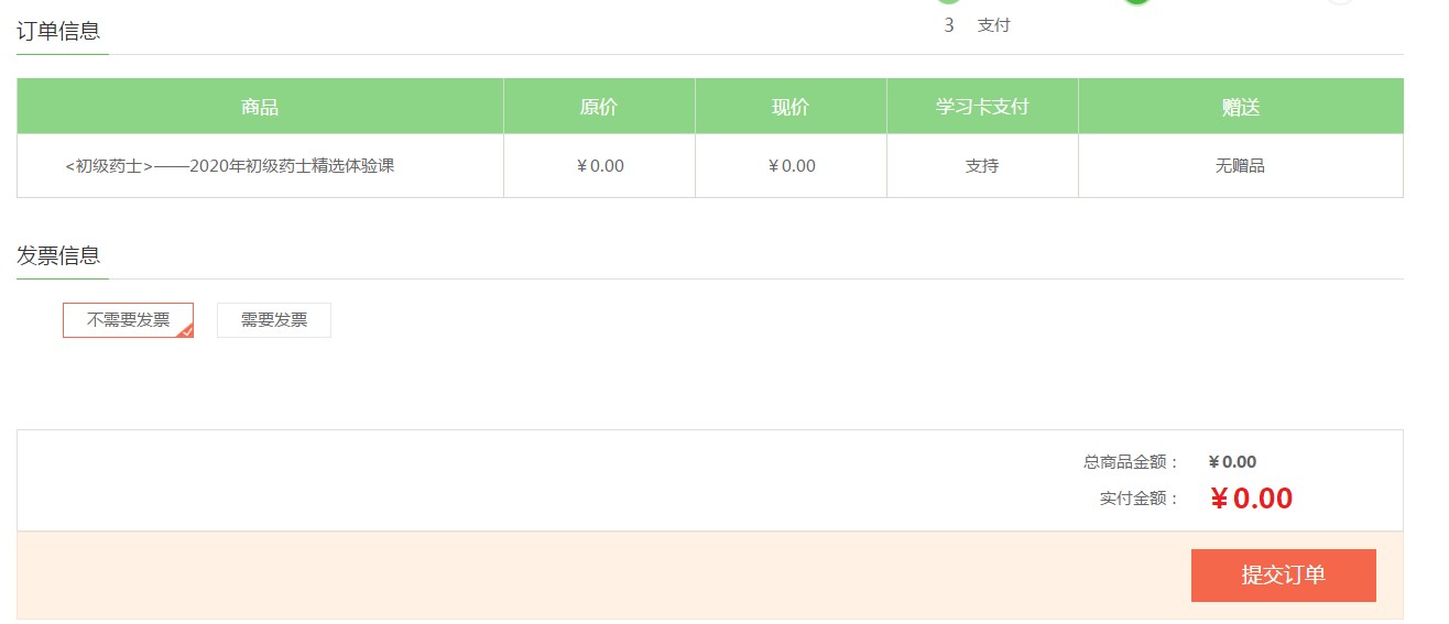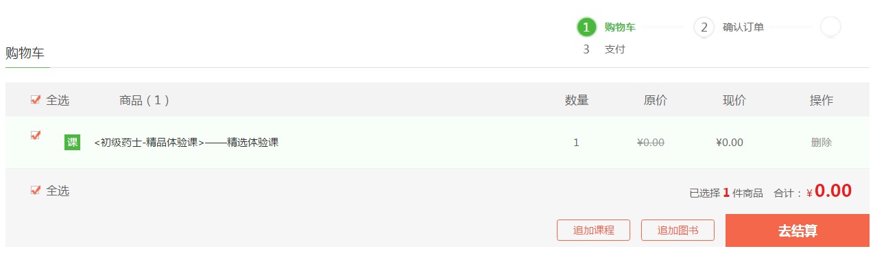 第一步:點擊上文的““領(lǐng)取課程”進(jìn)入購物車,并點擊去結(jié)算;