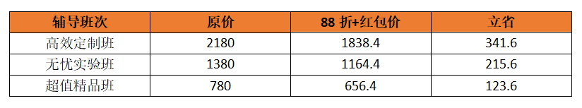 特別提醒:80元紅包可用于高效定制班、50元學費紅包用于無憂實驗班、30元學費紅包用于超值精品班。