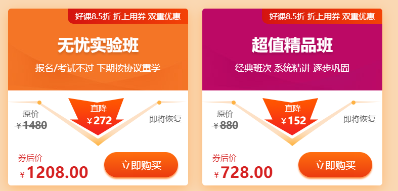 怎么樣?這個羊毛是不是值不值得一薅?原價2180元的高效定制班,“爽”11價格1803元;原價1380元的無憂實驗班,“爽”11價格1123元!心動不如行動!速度去購課>>