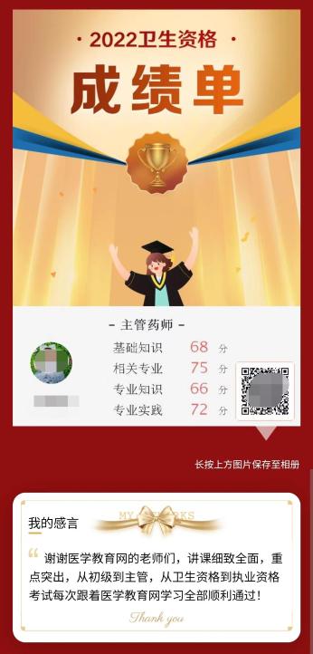 真的恭喜這位學員,能夠在醫(yī)學教育網(wǎng)老師的陪伴下,過五關斬六將,順利取證!小編也想對正在準備參加藥學職稱考試的考生說,希望通過這位學員的分享可以讓大家更加信賴醫(yī)學教育網(wǎng)的老師,相信醫(yī)學教育網(wǎng)課程的品質(zhì)!去試聽課程>