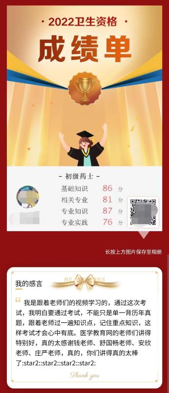 2022年藥學(xué)職稱考試成績已經(jīng)公布,有很多成功通過考試的考生都分享了自己的心聲,醫(yī)學(xué)教育網(wǎng)為大家整理“#2022初級藥士學(xué)員心聲#跟著老師過一遍知識點(diǎn),心里有底!”內(nèi)容如下,快來看看吧!