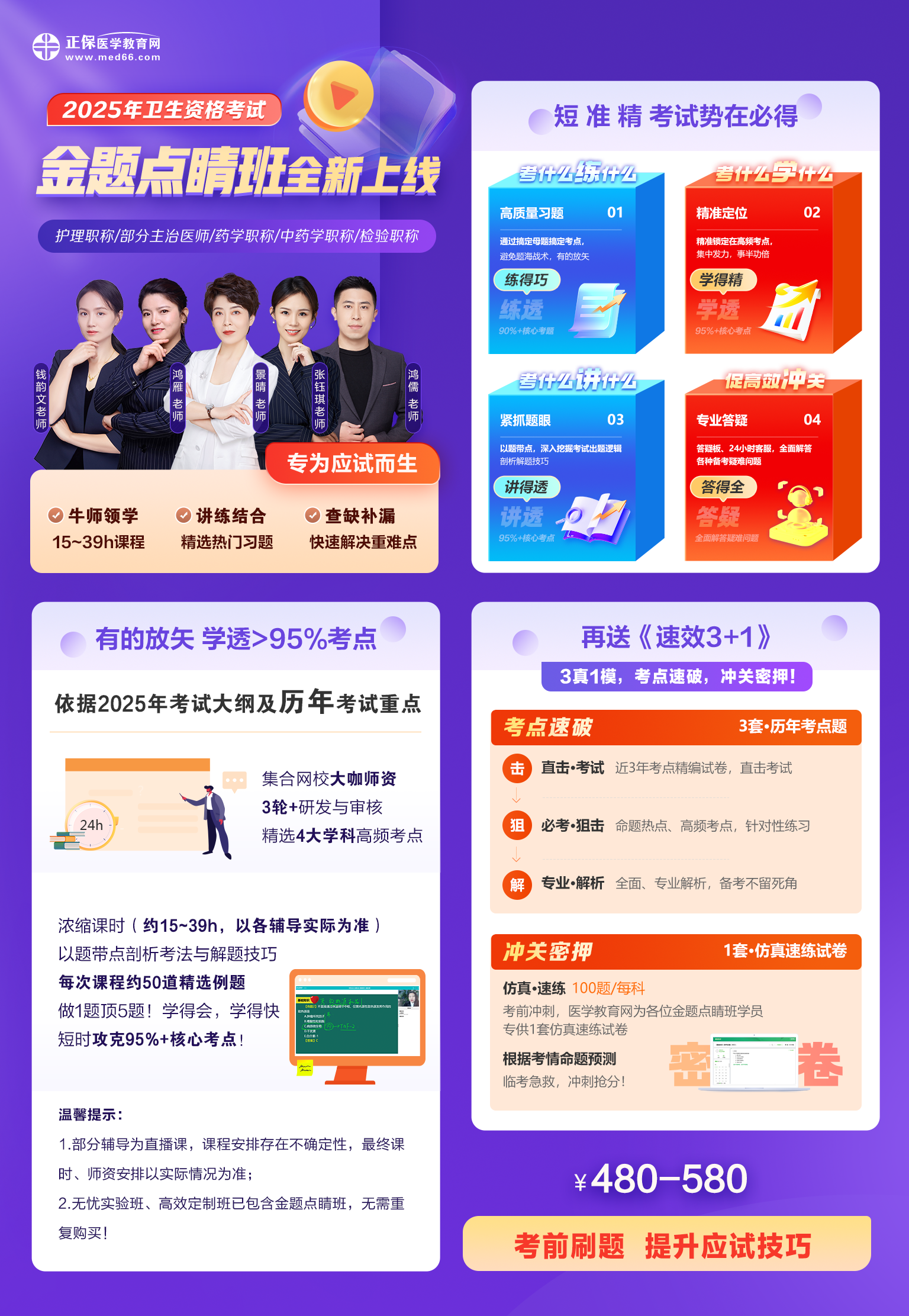 金題點睛班面向人群:購買2025年初級藥士無憂實驗班、高效定制班、金題點睛班及2025年初級藥士無憂實驗班、高效定制班續(xù)學(xué)學(xué)員。