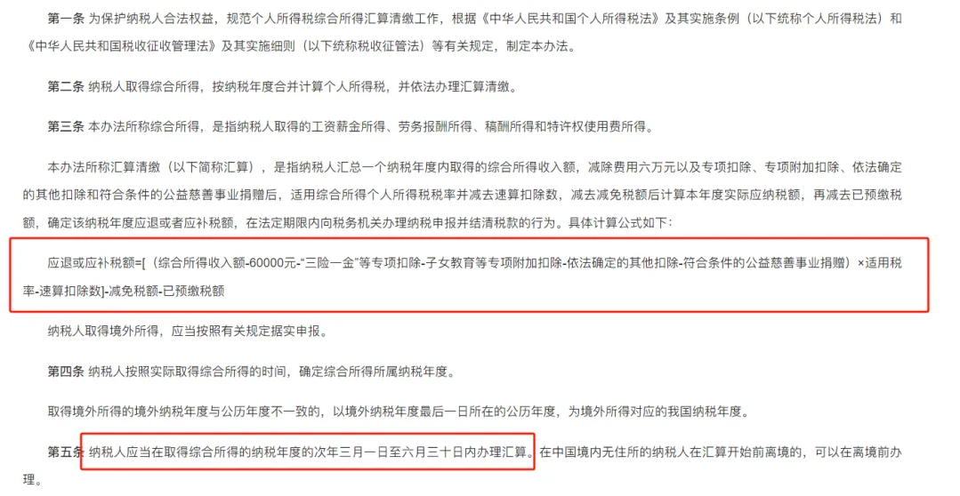 應(yīng)退或應(yīng)補(bǔ)稅額=[(綜合所得收入額-60000元-“三險(xiǎn)一金”等專項(xiàng)扣除-子女教育等專項(xiàng)附加扣除-依法確定的其他扣除-符合條件的公益慈善事業(yè)捐贈(zèng))×適用稅率-速算扣除數(shù)]-已預(yù)繳稅額。