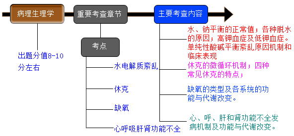 2021年中級主管藥師病理生理學(xué)在基礎(chǔ)知識考試科目中出現(xiàn),所占分值大概8-10分左右。重點考察章節(jié)及重點考察內(nèi)容如下: