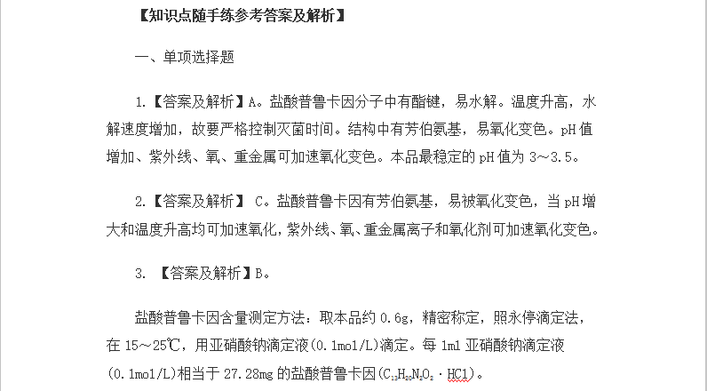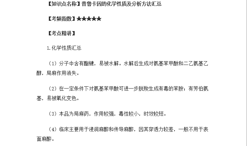 - · 主管藥師高頻考點:普魯卡因的化學(xué)性質(zhì)及分析方法