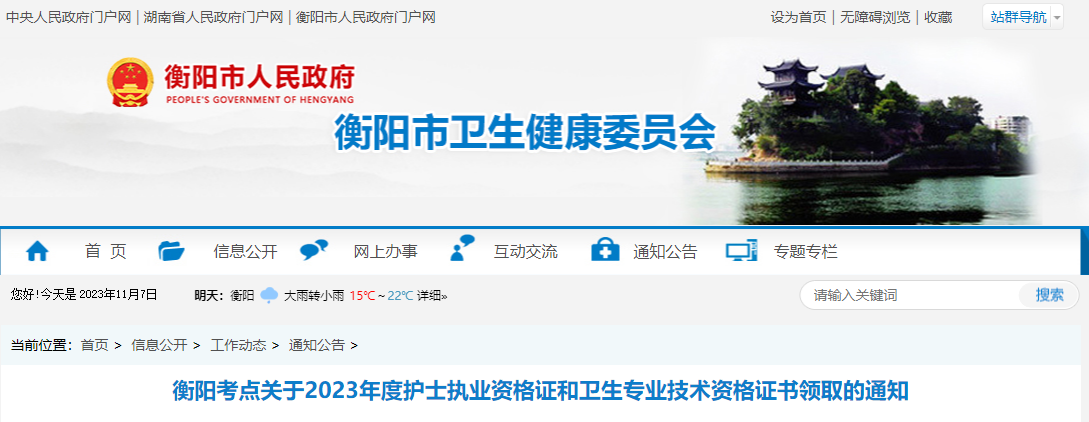 衡陽(yáng)2023年護(hù)士執(zhí)業(yè)資格證和衛(wèi)生專業(yè)技術(shù)資格證書(shū)領(lǐng)取通知(附咨詢電話)